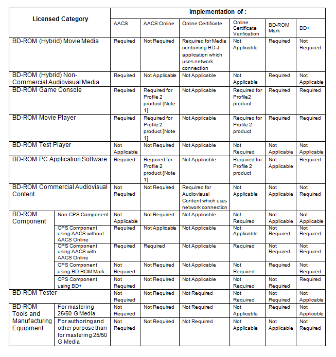 3. Licensee shall implement and cause its Licensed Affiliate(s) and any applicable subcontracting third party(ies) to implement CPS in its BD-ROM Products in accordance with the following CPO Table and CPS license. For the avoidance of doubt, “Not Required” in the CPO Table means that it is Licensee’s choice whether it will implement such CPS or not.